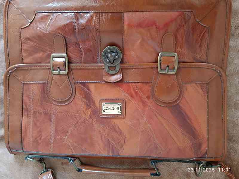 Prodám UNISEX HNĚDOU AKTOVKU, skoro nepoužívaná. Hlavní část těla aktovky má chlopeň která se zavírá na otočné kolečko, 2 okrasné zapínací přezky. Uvnitř jsou dvě oddělené velké kapsy, uprostřed jedna zavíraná na zip (min. formát papír A4 ) další vložená kapsa na čelní části zapínaná na zip. Aktovka má držátko na nošení a velký popruh umožňující nošení i přes rameno. 41 x 31 cm, Šíře aktovky cca. 6 cm, rozšiřitelná na 10 cm. Uvnitř aktovky jsou přihrádky zapínané na zip pro drobnosti. Nejlépe osobní odběr Plzeň
