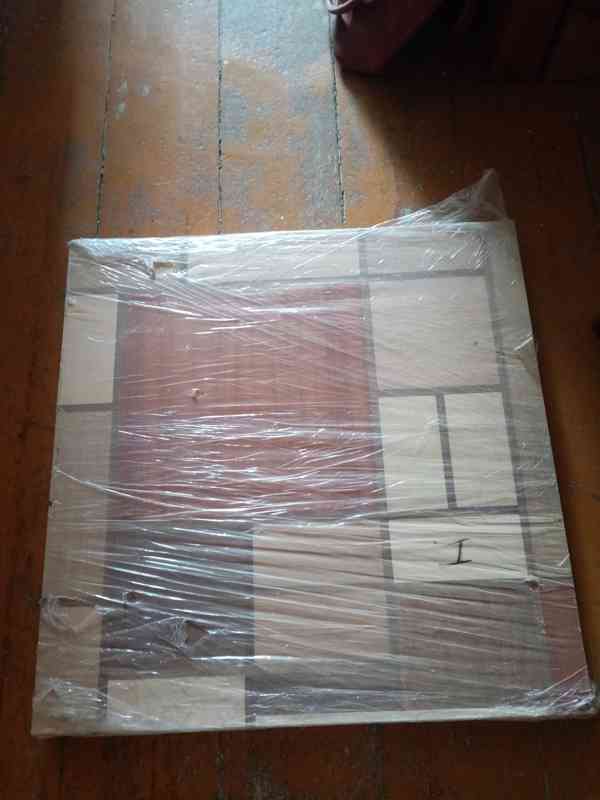 Prodám desku stolu masivní dřevo ve stylu Modrian, vykládané různými druhy dřev, nutné dodělat nohy