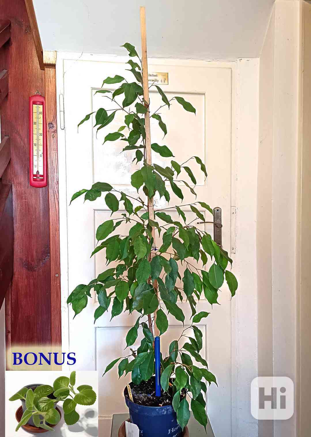 Prodám 105 cm vysoký vzpřímený fíkus ( někdy nazývaný jako fíkus drobnolistý nebo fíkus malolistý, lidově též benjamin ). Je oblíbený jako nenáročná pokojová dřevina do bytů či kanceláří. Tvarování koruny stromku je snadné. Jako bonus přidám mladou rostlinku aromatického rýmovníku. Pouze osobní odběr Praha 6.