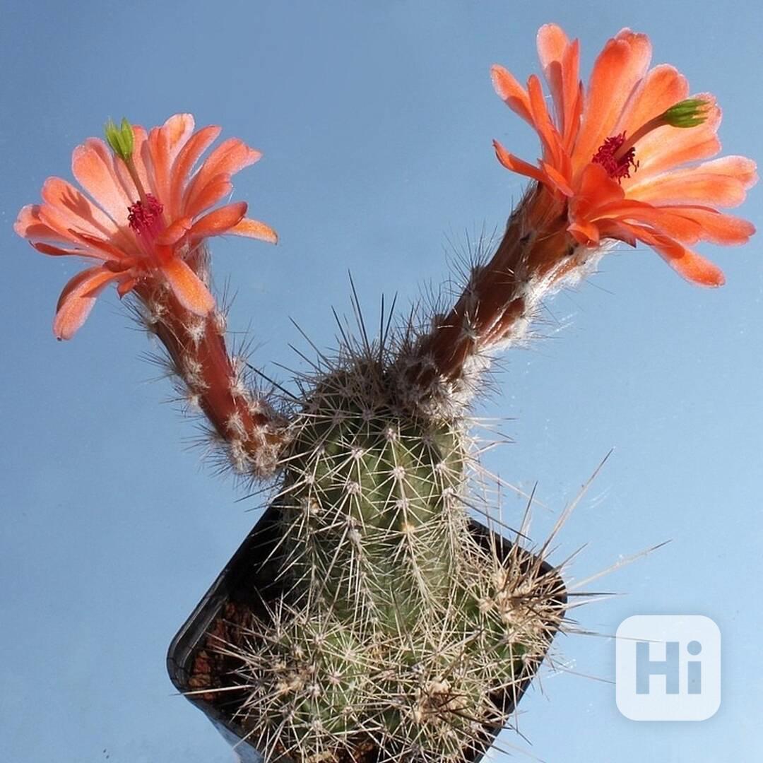 Echinocereus scheeri pochází z jihovýchodní oblasti Sonora, Chihuahua a Západní durango v Mexiku. Je to široce rozšířený polymorfní druh vykazující značné rozdíly zejména ve velikosti, barvě květů a habitu. Roste visící z útesů, skalnatých svahů a zastíněných kaňonů na mechem porostlých římsách a balvanech v xerofytických křovinách s nápadnými květy ve výškách 350 - 1800 metrů nad mořem. Tělo kaktusu je štíhlé, ostnaté, poléhavé, svislé nebo stoupavé, válcovité, výrazně zúžené ke špičce, 10 - 70 cm dlouhé a 1,5 - 4 cm v průměru. Barva je lesklá tmavě zelená až žlutavě zelená. Echinocereus scheeri patří mezi Echinocerei s měkčím stonkem. Žeber bývá 6 - 10, jsou dobře definovaná, tupá, tuberkulovitá, poněkud spirálovitá. Areoly jsou blízko sebe, nažloutlé, asi 2 - 7 mm od sebe. Ostny jsou v počtu 7 - 12(-17), jehlicovité, bílé s hnědými nebo načernalými rýhami. Středových trnů bývá 0 - 4, jsou bílé až nahnědlé a 1 - 20 mm dlouhé. Radiální trny jsou v počtu obvykle 6 - 13, bílé až světle hnědé, 1-7 dlouhé. Kaktus má dlouhé, robustní květy, které se zdají být přizpůsobeny pro opylování kolibříky. Květy jsou červené, fialové, šarlatové, růžové nebo lososově oranžové, trubkovité, 6 - 12 cm dlouhé, 4 - 8 cm v průměru, nesené po stranách stonku z ostře špičatých pupenů. Balení obsahuje 20 semen za 24 Kč. Semena – neoseeds