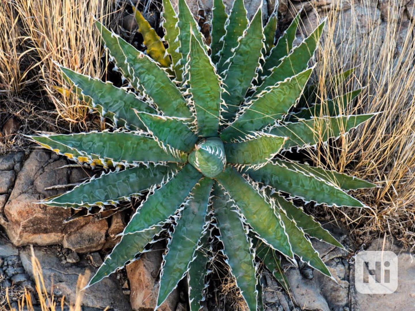 Agave xylonacantha 'Blue' je krásná modrozelená forma Agave xylonacantha pocházející z středního Mexika ve státě Hidalgo, kde tato rostlina obývá suchou lesní vegetaci. Jedno z předchozích názvů této rostliny (Agave carchariodonta) odkazovalo na podobnost se zuby (odonta) na okrajích listů se zuby velkého bílého žraloka - Carcharodon carcharias.Většinou solitérní rostlina, ale někdy se časem mohou vytvářet výhonky. I když pomalu roste, mohou bazální listové růžice s dlouhou životností dosáhnout v dospělosti velikosti až 120 cm na výšku a 150 cm v průměru. Listy jsou barvy modrozelené, kopinaté a vzhledem k ostatním druhům je jich poměrně málo – cca 20. Podél okraje listu jsou relativně velké a dřevité zuby, každý s až čtyřmi trny, které jim dávají zvlněný vzhled. Listy také nesou otisky, které vznikají tím, že listy tlačí proti okrajům novějších listů ve středu rostliny. Květný stvol vyrůstající z růžice může být až 3 m vysoký a na něm se tvoří květy o průměru až 4 cm s nazelenalými okvětními lístky. Po odkvětu rostlina umírá.Tato agáve se velmi snadno pěstuje a snáší extrémní teplo, sucho a také mírný mráz. Balení obsahuje 1 sazenici za 45 Kč. Semena – neoseeds