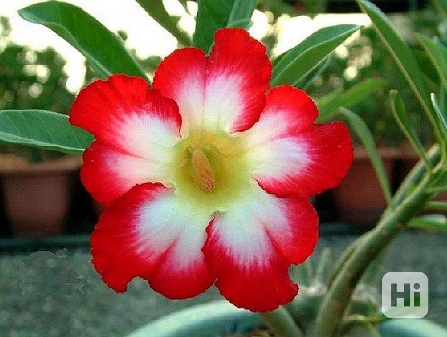 Adenium Obesum "pouštní růže" je nádherná sukulentní rostlina. Pro své bohaté květenství je nazývána pouštní růží, v přírodě rostoucí jako keře nebo stromky se ztloustlým kmenem někdy bizarních tvarů částečně ukrytým pod zemí. U nás je pěstována jako velice dekorativní exotická pokojová rostlina vhodná zvláště pro tvorbu kvetoucí sukulentní bonsaje a nenáročná na pěstování. Je teplomilná a dobře snáší suchý vzduch, proto je vhodná i do ústředně vytápěných interiérů. Květy adénií se vyskytují ve velké paletě nádherných jasných barev. Balení obsahuje 5 semen za 43 Kč. Semena - neoseeds
