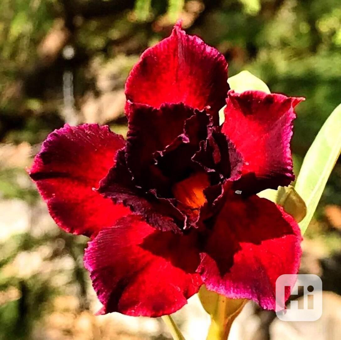 Adenium Obesum "pouštní růže" je nádherná sukulentní rostlina. Pro své bohaté květenství je nazývána pouštní růží, v přírodě rostoucí jako keře nebo stromky se ztloustlým kmenem někdy bizarních tvarů částečně ukrytým pod zemí. U nás je pěstována jako velice dekorativní exotická pokojová rostlina vhodná zvláště pro tvorbu kvetoucí sukulentní bonsaje a nenáročná na pěstování. Je teplomilná a dobře snáší suchý vzduch, proto je vhodná i do ústředně vytápěných interiérů. Květy adénií se vyskytují ve velké paletě nádherných jasných barev. Balení obsahuje 5 semen za 43 Kč. Semena - neoseeds