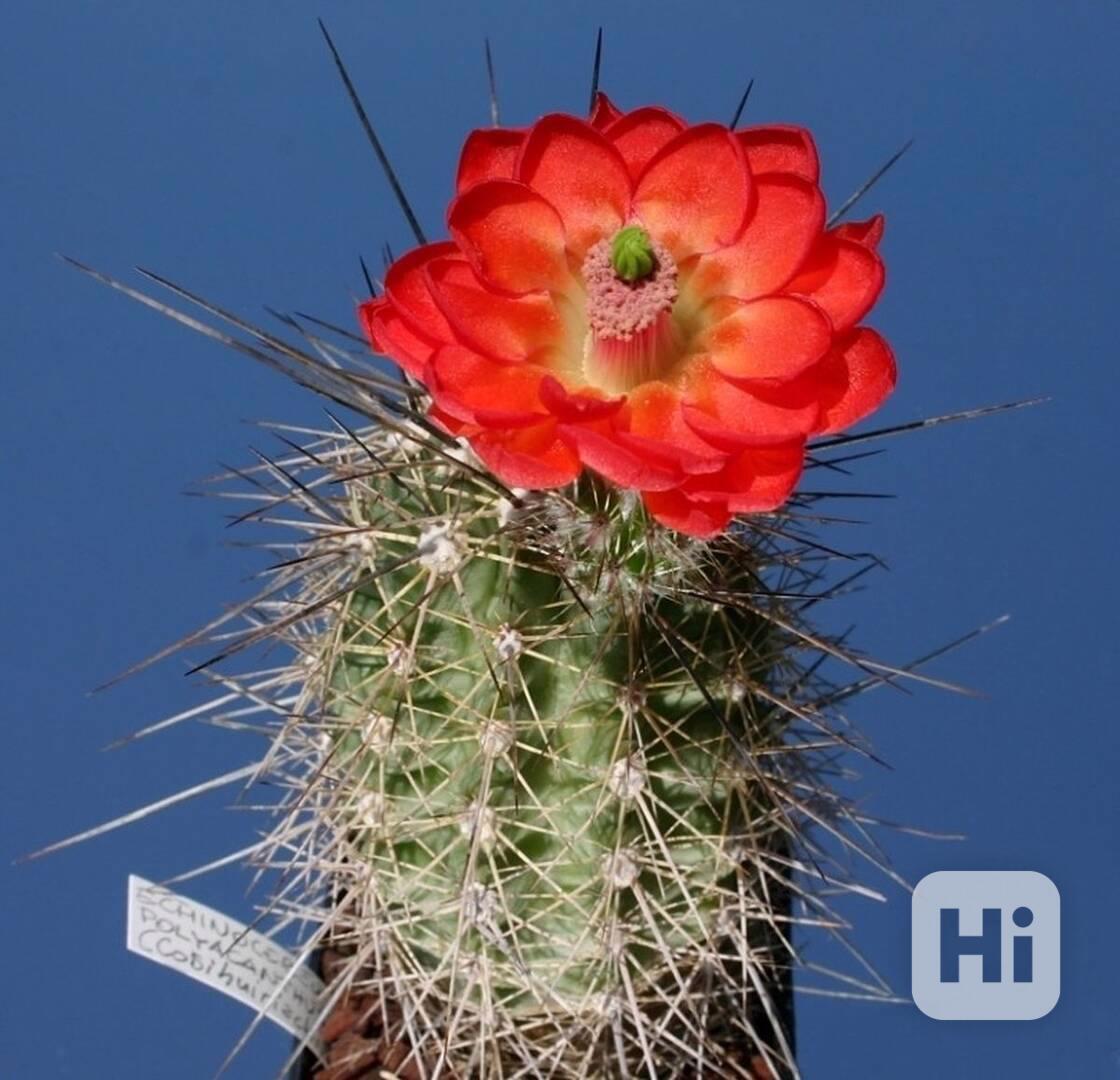 Kaktus Echinocereus polyacanthus v. spinigematus je široce rozšířený druh, lokálně běžný na jihu USA (jihovýchodní Arizona, západní Nové Mexiko), na rozsáhlých oblastech v severozápadním Mexiku (Chihuaua, Durango, Cosihuiriachi, vyskytuje se také v pohoří Sierra Madre Occidental ve východní Sonoře a na poloostrově Baja California). Nadmořská výška 1300 a 2000 metrů nad mořem. Roste na skalních výchozech v dubových a borových lesích. Nízko rostoucí, osamělý nebo shlukující se kaktus, tvořící velké polštáře, obvykle méně než 50, ale příležitostně několik stovek stonků. Tento druh je velmi variabilní a několik odrůd je tak odlišných, že jediným spojujícím faktorem je jasně červený květ a zaoblené okvětní lístky. Stonky světle zelené, často s červeným nádechem, válcovitě se zužující ke špičce, každý stonek až 30 cm vysoký, 7 cm v průměru. Žebra 9 až 13, obvykle 10 dobře definovaných, nízká, buď tuberkulovitá nebo ne. Areoly přibližně 1 - 1,5 cm od sebe a poněkud vlnité. Středové trny 1 až 7, nažloutlé nebo hnědé, bazálně rozšířené, rovné, protáhlé, stárnutím šedivějí, proměnlivé délky, až 5 cm dlouhé. Radiální trny 6 až 17 (obvykle asi 12), špinavě bílé nebo načervenalé, často se překrývající, až 2 cm dlouhé, často mnohem kratší. Květy denní, vyrůstající blízko vrcholu stonku, trubkovité až nálevkovité, zářivě růžovooranžové až temně červené se žlutavým nebo bělavým hrdlem, 3 - 14 cm dlouhé, 3 - 8 cm v průměru, vaječník a trubice se nažloutlými ostny a hojná vlna pavučinová v paždí šupin, která u jiných podobných druhů chybí. Kvetení obvykle začíná 5 až 10 let po výsevu, když rostlina dozrává. Plody vejčité, zelené, s bílou dužninou, neopadavé a jedlé. Balení obsahuje 20 semen za 24 Kč. Semena – neoseeds