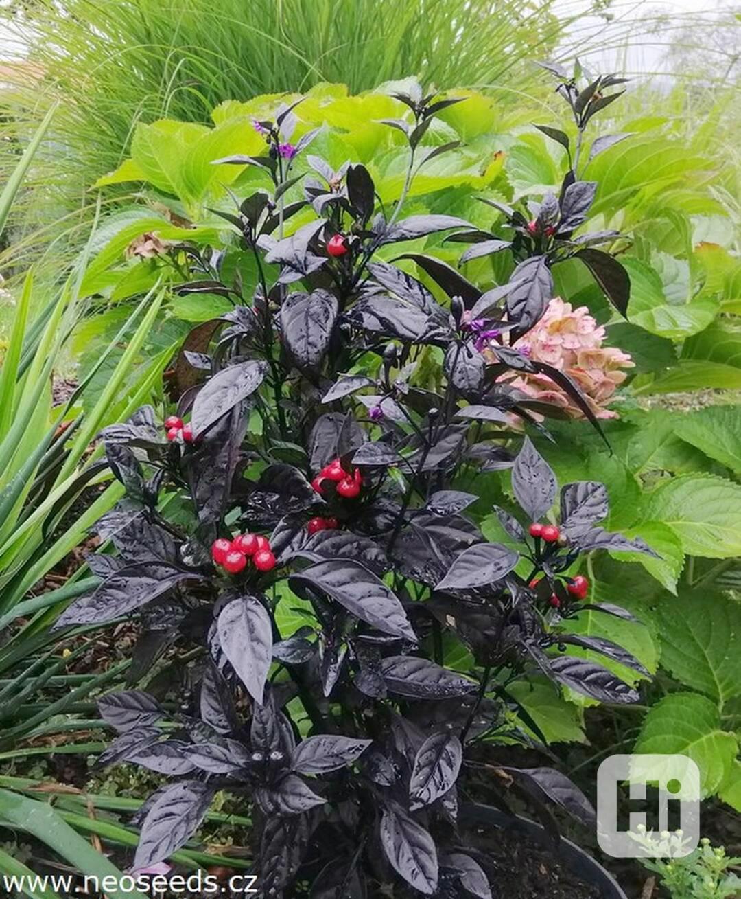 Chilli Black Pearl (Capsicum annuum) původně pocházející z Ameriky je jednou z nejkrásnějších druhů chilli kvetoucí fialovými květy na tmavě zelených, později fialových až černých výhoncích. Z květů se pak vyvíjejí neméně okrasné kulovité lusky střední pálivosti, která se pohybuje okolo 20 000 - 30 000 SHU. Jsou ideální pro přípravu omáček, polévek, gulášů a jiných pikantních pokrmů. Lze je používat v syrovém stavu, sušené, nebo nakládané. Balení obsahuje 10 semen za 35 Kč. Semena – neoseeds