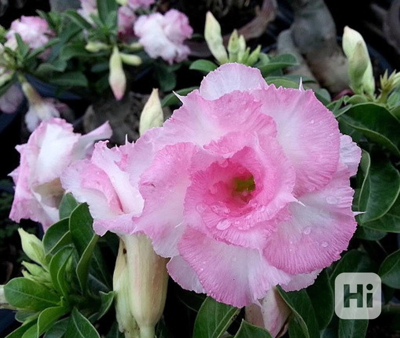 Adenium Obesum "pouštní růže" je nádherná sukulentní rostlina. Pro své bohaté květenství je nazývána pouštní růží, v přírodě rostoucí jako keře nebo stromky se ztloustlým kmenem někdy bizarních tvarů částečně ukrytým pod zemí. U nás je pěstována jako velice dekorativní exotická pokojová rostlina vhodná zvláště pro tvorbu kvetoucí sukulentní bonsaje a nenáročná na pěstování. Je teplomilná a dobře snáší suchý vzduch, proto je vhodná i do ústředně vytápěných interiérů. Květy adénií se vyskytují ve velké paletě nádherných jasných barev. Balení obsahuje 5 semen za 47 Kč. Semena - neoseeds